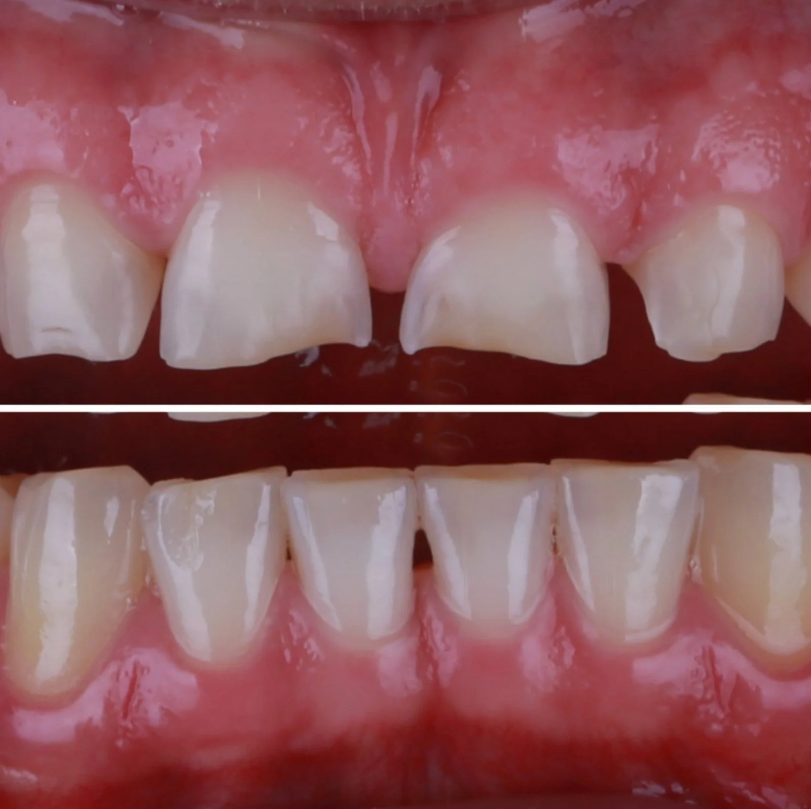 6. Frontal view of treated teeth, teeth apart (upper or lower: show teeth that have been treated)